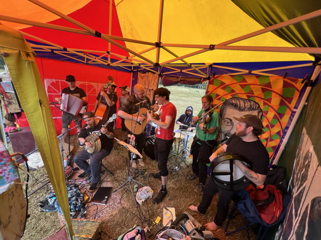 Jason Stirling followed with some great country punk tunes, an amazing set by the Speed Dinosaurs where everyone hid from a brief but torrential downpour.